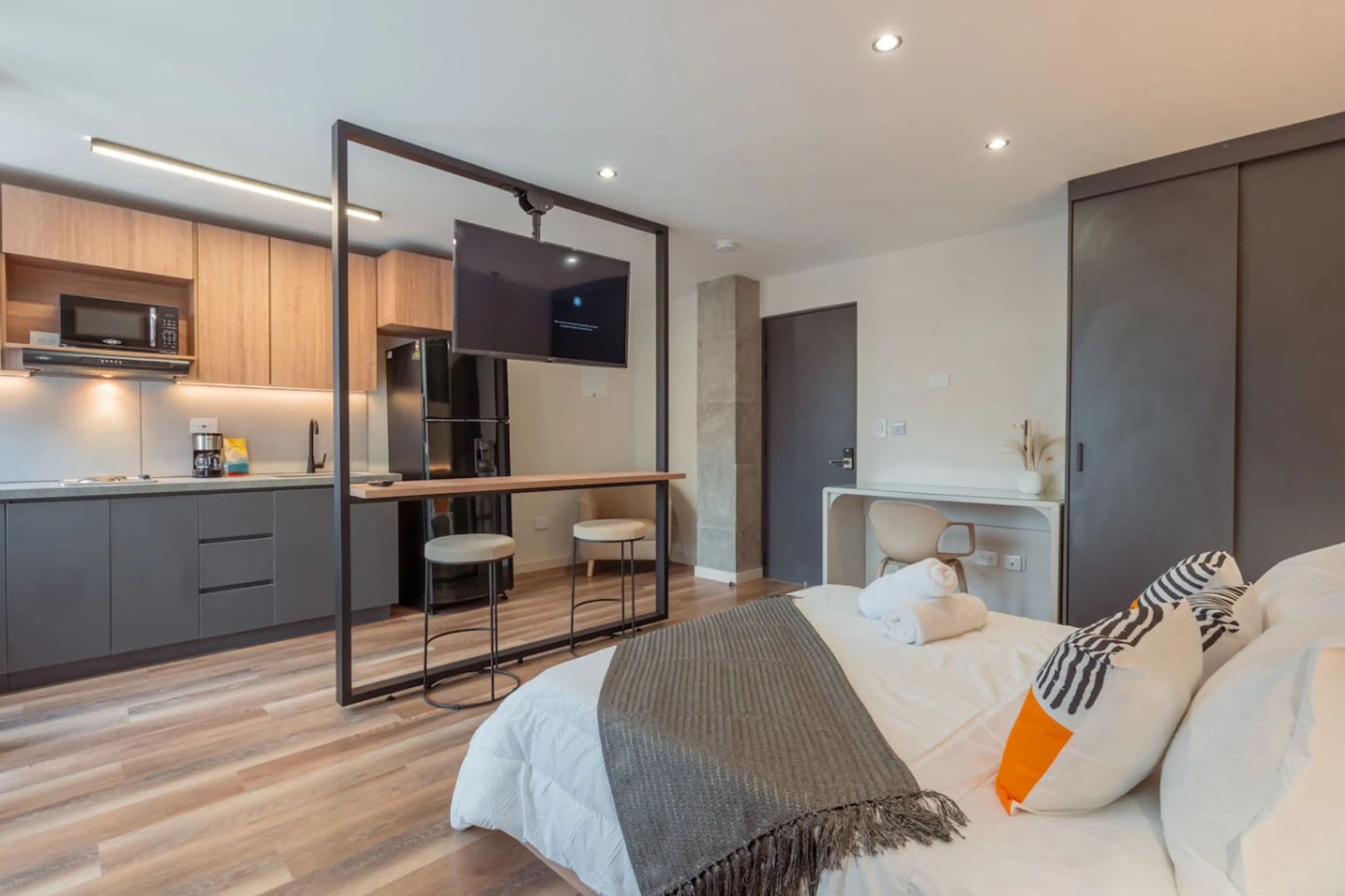 Enjoy a relaxing stay in our elegant loft at Arche Lofts, located in Laureles–Estadio, one of Medellín’s most vibrant and tourist-friendly areas. "Excellent location." "Designer interior." "Professional cleaning." • 1 min from Carrera 70 • 2 min from Avenida Nutibara • 5 min from Atanasio Girardot...